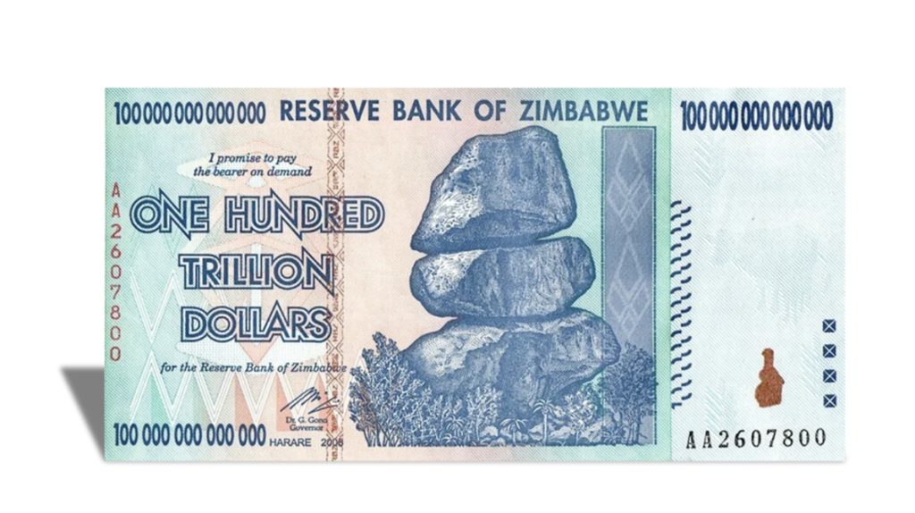Zimbabwe once issued a 100 trillion dollar banknote, the highest denomination note ever produced for legal tender. This note became a symbol of the country’s extreme monetary problems. In 2009, during the peak of hyperinflation, even a 100 trillion dollar bill couldn’t buy a bus ticket in Harare, the capital of Zimbabwe.